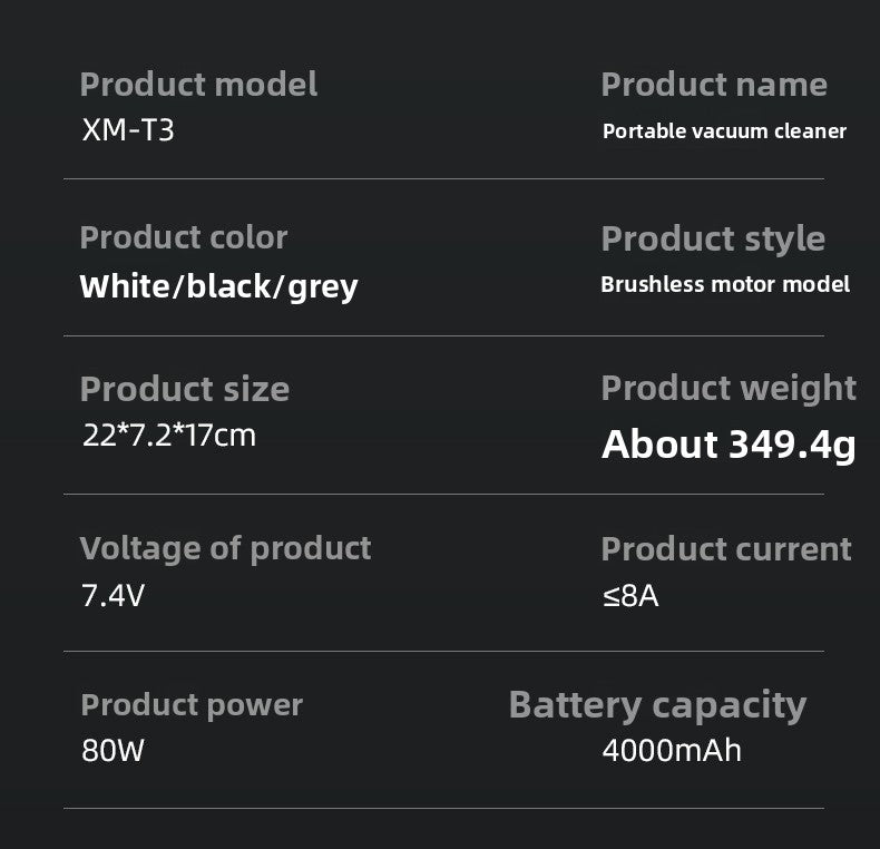 [Package List of Brush Models]: Vacuum Cleaner Host * 1, Long Flat Suction Nozzle with Brush * 1, Long Bolwtorch with Brush * 1, Small Size Inflatable Nozzle * 1, Vacuum Suction Nozzle * 1, type-C Interface Charging Cable * 1, Chinese and English Manual * 1