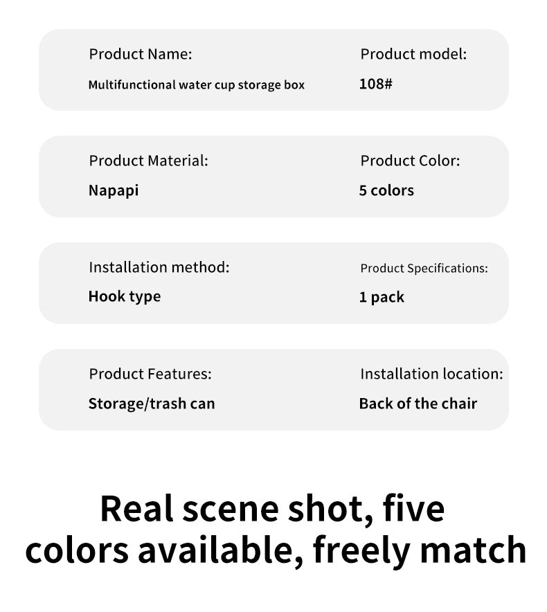 Car Cup Holder Car Seat Back Storage Box Multi-Functional Storage Bag Rear Seat Organizer Hook Trash Can