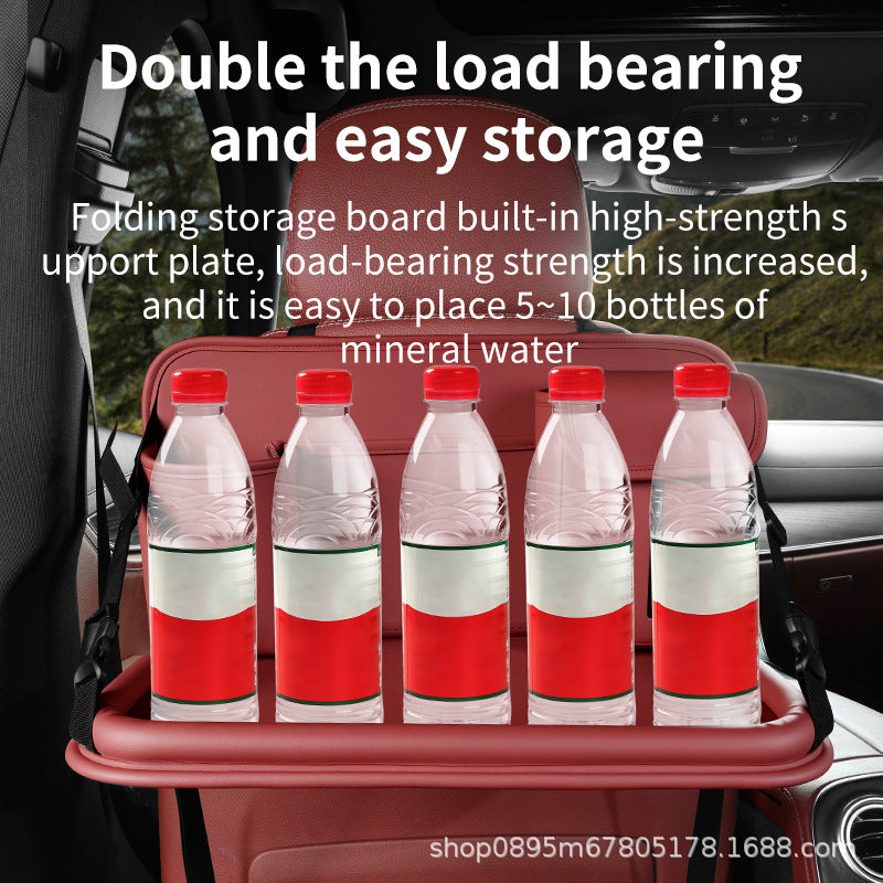 Car-mounted small table, foldable large-capacity multi-functional dining table for rear car seats, suitable for studying, eating, and storing laptops or tablets