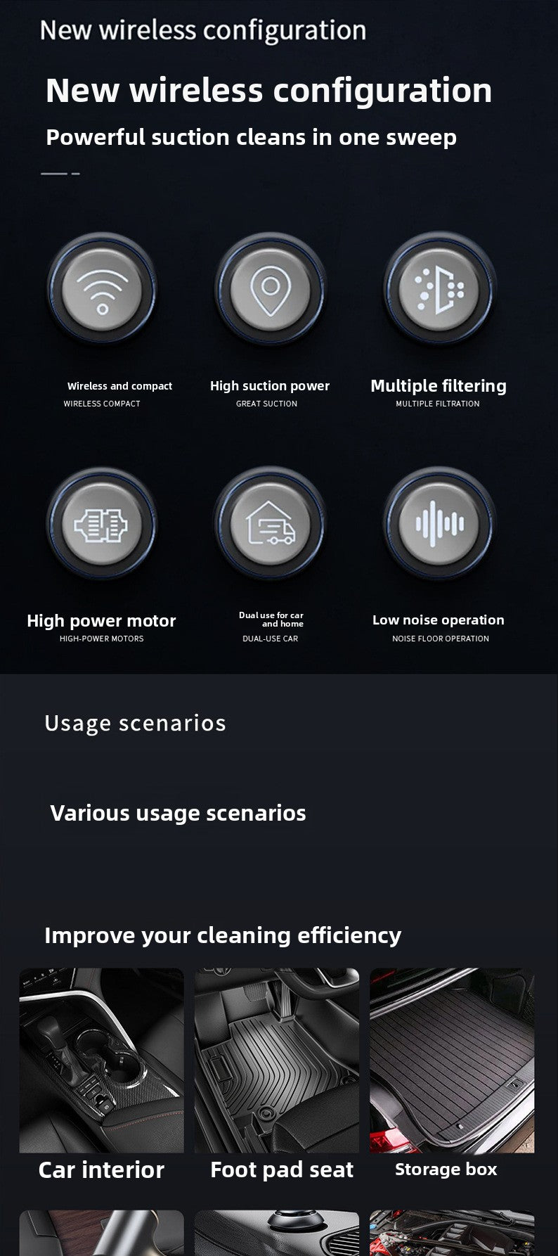 Car Vacuum Cleaner Wireless Charging for Car and Home Use High Suction Power Handheld Car Interior Vacuum Cleaner